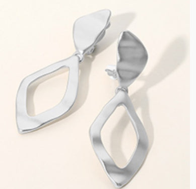 Hammered Metal Geometric Clip On Earrings