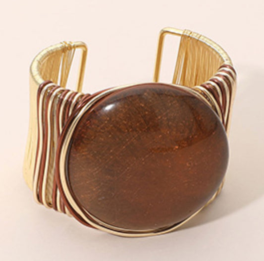 Bold Oval Stone Accent Stainless Steel Wire Cuff Bracelet