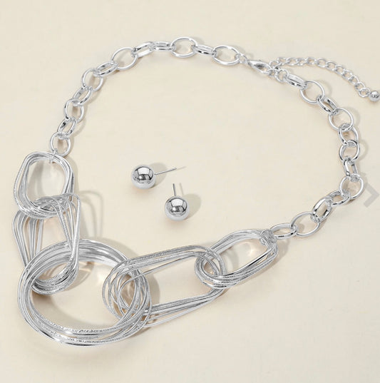 Abstract Metal Ring Linked Chain Necklace