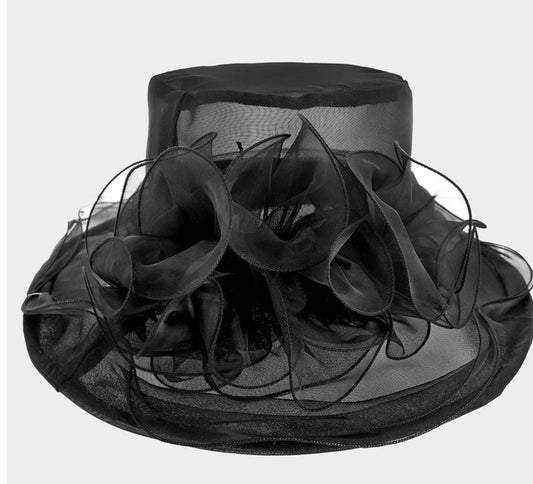 Rhinestone Embellished Feather Accented Mesh Bow Dressy Hat