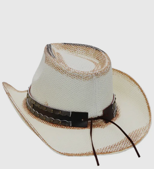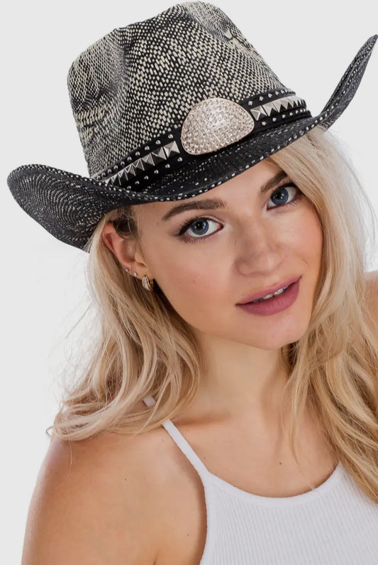 Bling Rhinestone Studded Belt Black Ivory Ombre Cowboy Hat
