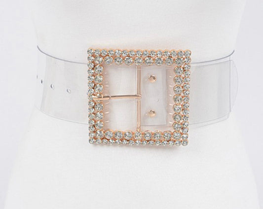 Clear w/ Gold Rhinestone or Color Rhinestone Buckle Belt _ CurvyWoman