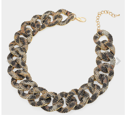 Bling Leopard Studded Chunky Chain Necklace