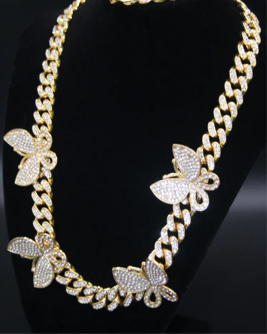 Hip Hop Queen Butterfly Choker Necklace - Silver or Gold