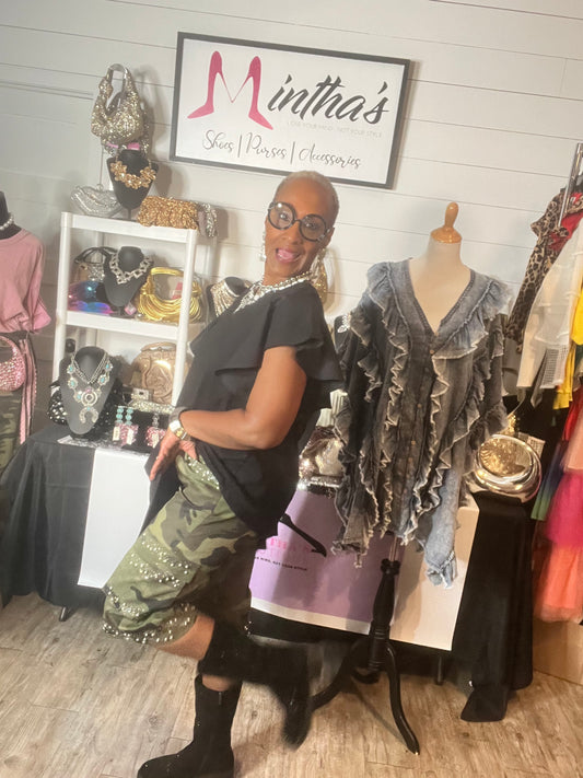 Camo Cargo Shorts w/Rhinestone & Pearl Detail