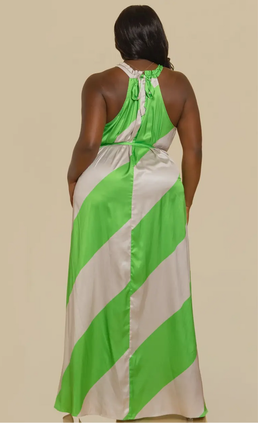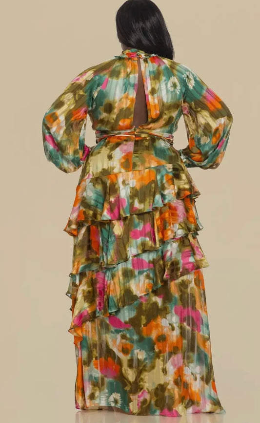 Eleven Satin Ruffle Maxi A Line Dress - Champagne