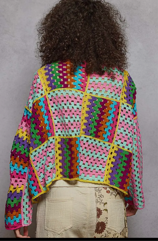COLOR OF WAVE CROP CROCHET CARDIGAN _One Size
