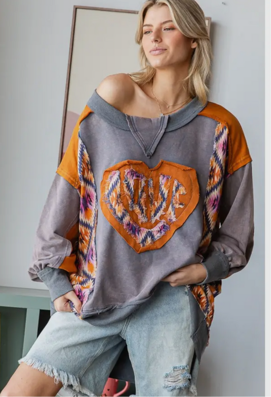 Love Heart Patchwork Pullover Top