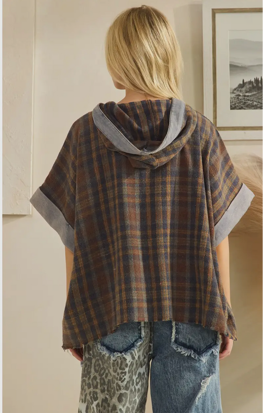 Washed Poncho Style Hoodie Jacket