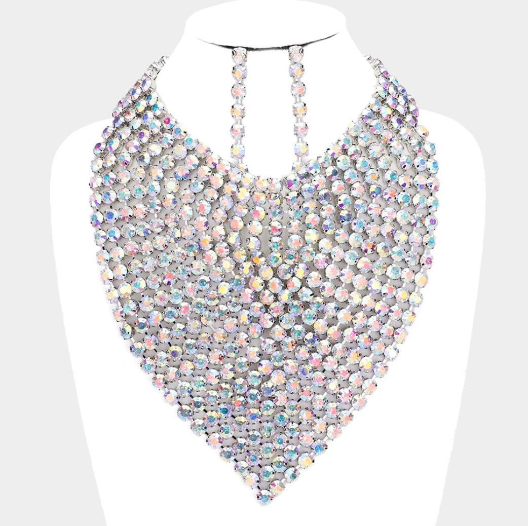 AB Rhinestone Statement Bib Necklace Set