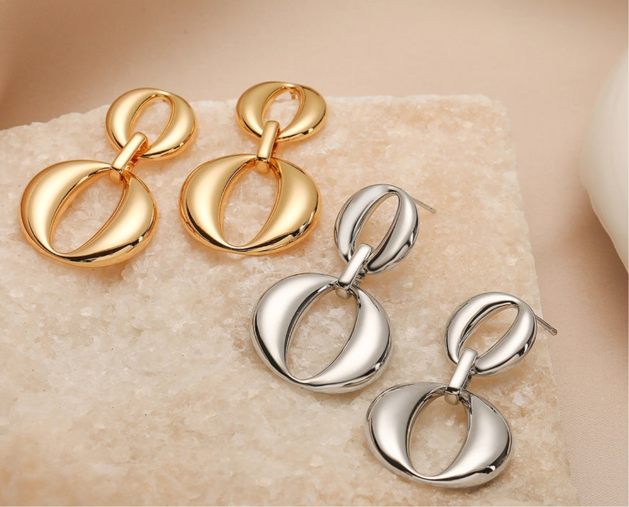 A modern accessory that combines style and sophistication with a bold edge. The geometric design adds an artistic flair, making these earrings a striking addition to any jewelry collection.