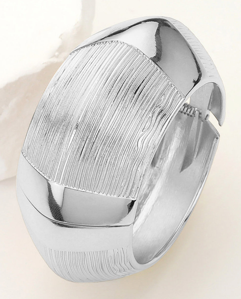 Chunky Textured Metal Hinged Bangle Bracelet