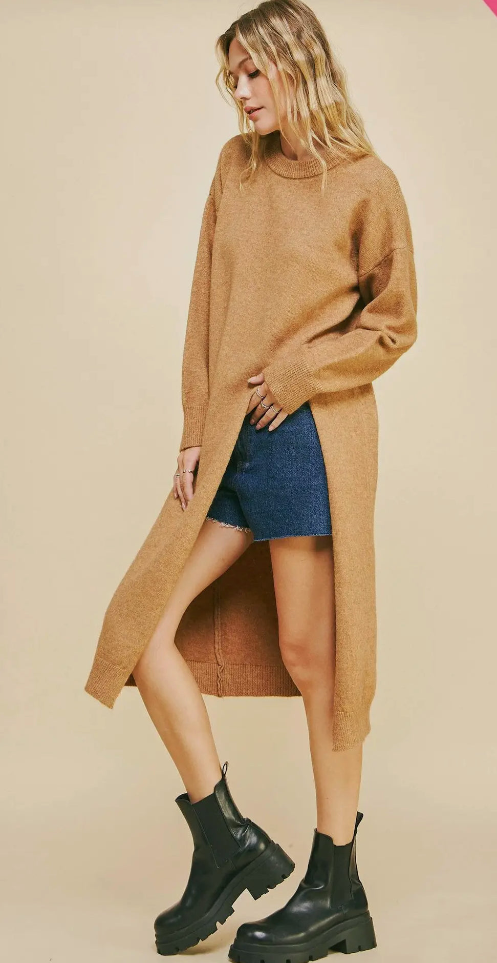 Classy Round Neck Asymmetrical Split Knit Long Dress/Top