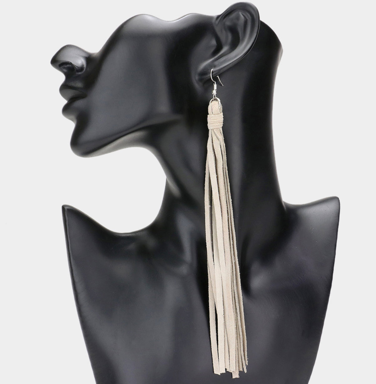 Genuine Leather Tassel Dangle Earrings_Cream