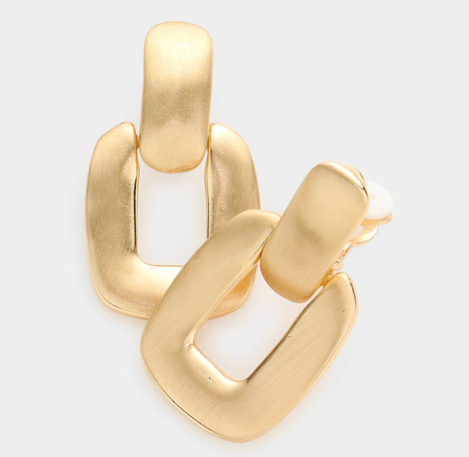 Metal Open Rectangle Dangle Clip on Earrings