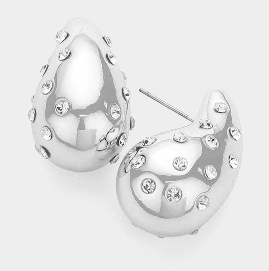 Stone Embellished Teardrop Earrings